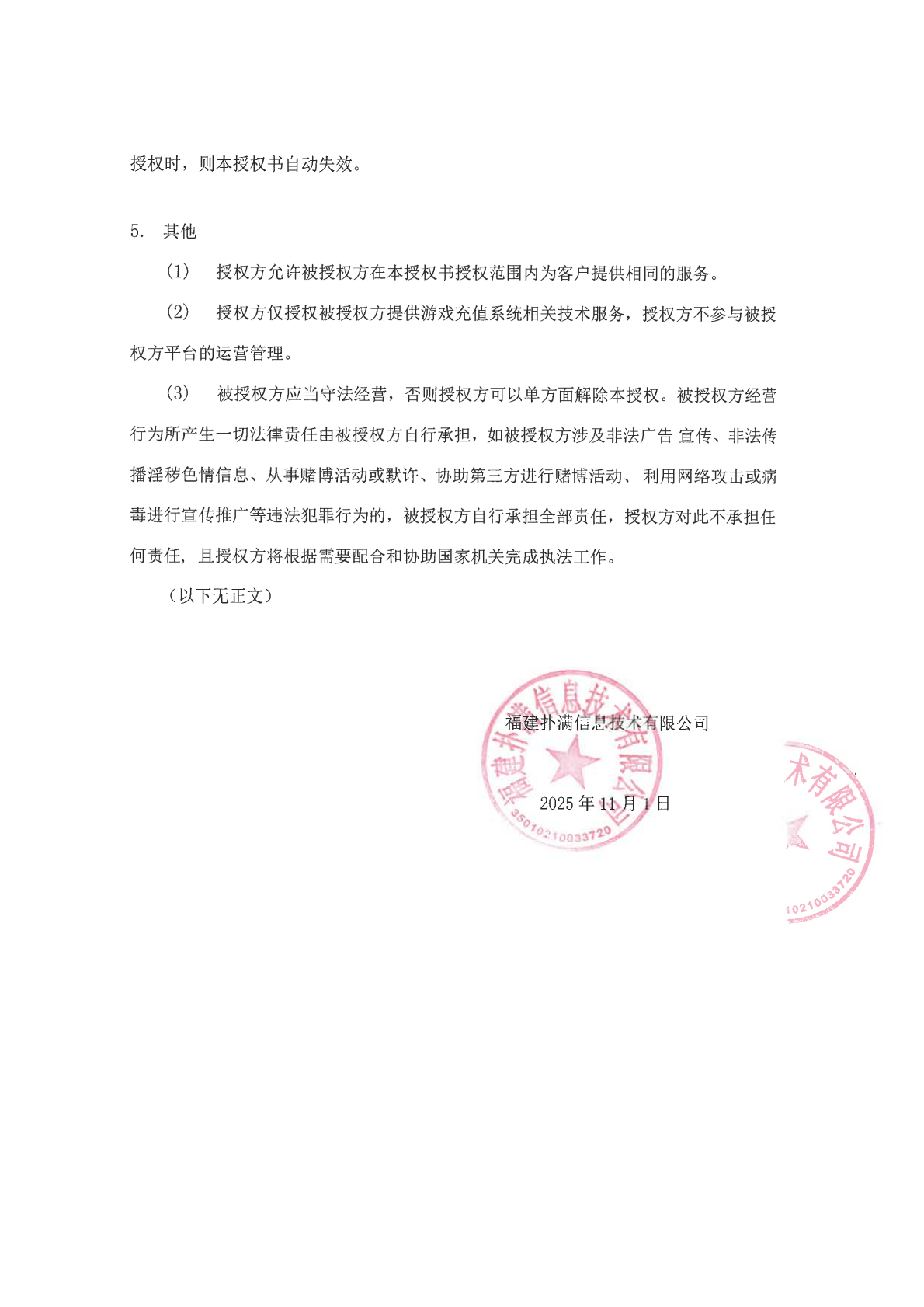 关于山东久卡互娱网络科技有限公司的独占性授权公示