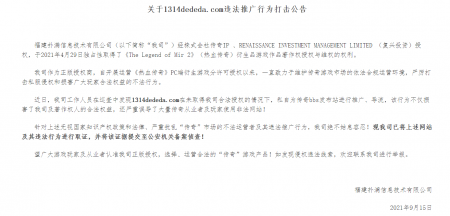 202108-30维权打击公告(二) k1体育信息技术有限公司(以下简称“我司”)经株式会社传奇IP 、RENAISSANCE INVESTMENT MANA...