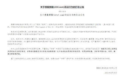 关于搜服搜服(sfsf.com)违法行为的打击公告 k1体育信息技术有限公司(以下简称“我司”)经株式会社传奇IP 、RENAISSANCE...
